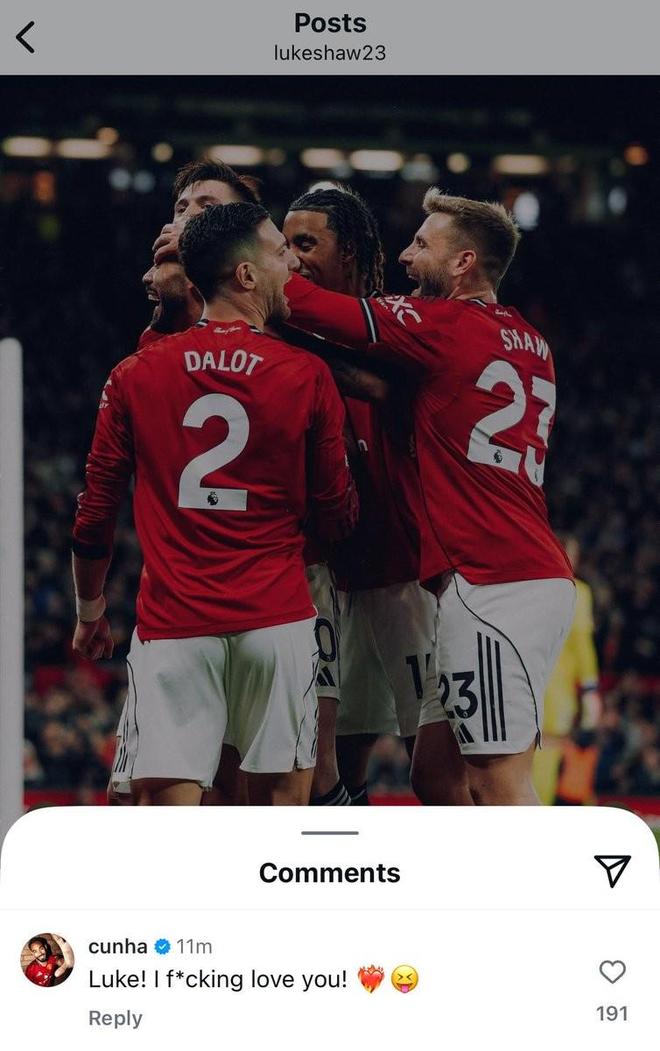 北京时间10月26日,英超第9轮的一场比赛,曼联在老特拉福德球场4-2击败布莱顿,拿下三分,赛后卢克-肖在社媒庆祝了这场胜利。恢复健康的卢克-肖本场比赛继续为曼联首发,赛后他晒出了庆祝库尼亚进球的照片,并配文:“让我们继续保持这种势头(Let’s keep the momentum )”本场比赛曼联拿下三分,这是阿莫林执教以来首次取得英超三连胜,另外,今夏的新援库尼亚终于斩获了自己的红魔生涯处子球,他在卢克-肖的社媒评论区留言:“卢克!我是真xxx爱你!❤️‍”此前《太阳报》曾透露,尽管俱乐部里有很多说葡萄牙语的球员,库尼亚还是与卢克-肖建立了很好的友谊。【上咪咕独家看英超】