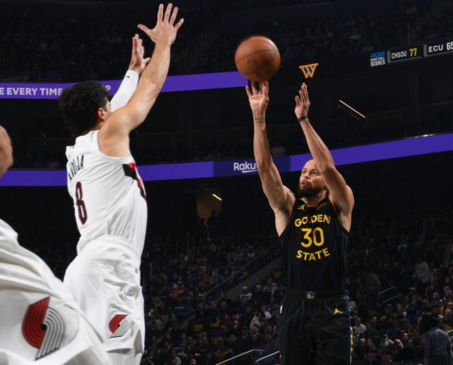 NBA战报开拓者127123险胜勇士,乐福26分7板5助,库里38分,巴特勒20分8板,杨瀚森未获得出场机会