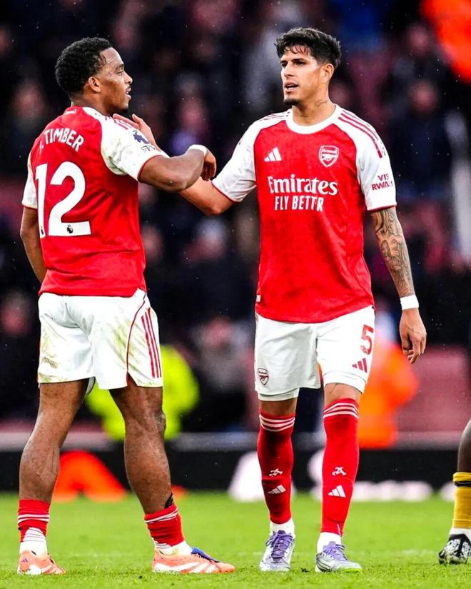 赛后,英媒Teamtalk总结出三条“阿森纳注定拿不到英超冠军”的理由:1.没有加布里埃尔+萨利巴,防线瞬间掉档本赛季阿森纳之所以防守数据全联盟第一,全靠加布里埃尔与萨利巴这对黄金搭档。此役两人同时缺阵,阿尔特塔只能让惯踢左路的因卡皮耶与原本踢右闸的廷伯临时组成双中卫,本·怀特与卡拉菲奥里分列两边。