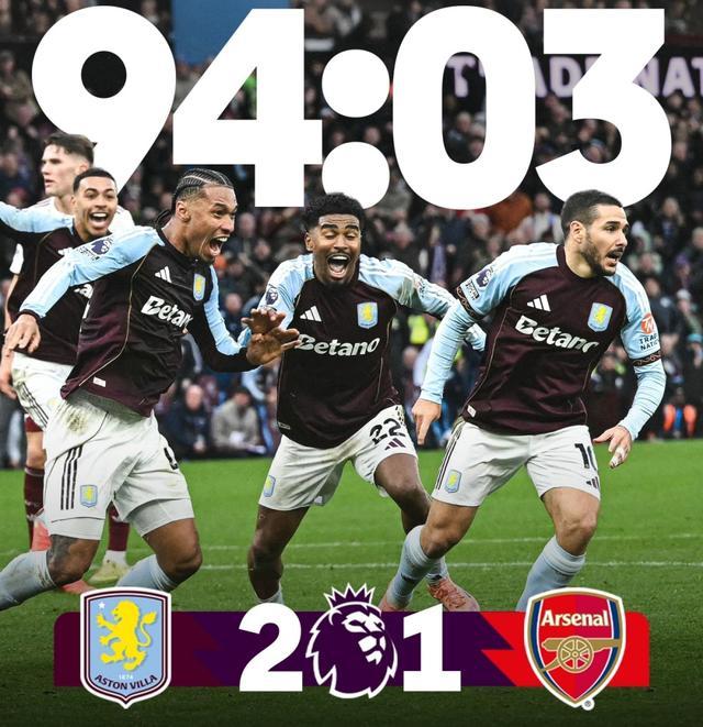 阿斯顿维拉 2-1 阿森纳阿森纳与维拉的对决可谓本轮焦点战之一,前枪手主帅埃梅里与阿尔特塔正面对话。第21分钟,萨卡送出横传,埃泽跟进破门,但边裁示意萨卡越位在先。第36分钟,保-托雷斯的斜传制造混乱,卡什后点凌空抽射破门,为维拉打破僵局。下半场再战,阿森纳迅速调整节奏。第52分钟,特罗萨德接萨卡横传扳平,两队回到同一起跑线!下半场补时第4分钟,因卡皮耶带球失误送了界外球,布恩迪亚乱战中上演读秒绝杀!在这场强强对话,埃梅里带领维拉笑到最后豪取英超5连胜,终结了阿森纳各项赛事18场不败!